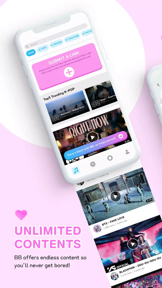 Download BB now and embark on a faster, more engaging journey to mastering the Korean language. Start singing along to your favorite K-pop tunes while effortlessly enhancing your language skills and expanding your vocabulary!