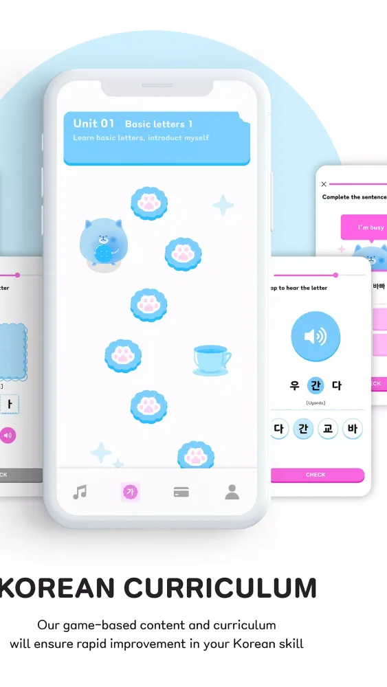 With BB, learning Korean is not just about studying; it's a part of your daily routine. Our user-friendly Korean modules are designed to fit seamlessly into your busy life, making it incredibly convenient for beginners to study Korean effortlessly. Dive into Hangul, the Korean alphabet, and discover its unique characters through quick, enjoyable, and interactive games that make the process both fast and fun.