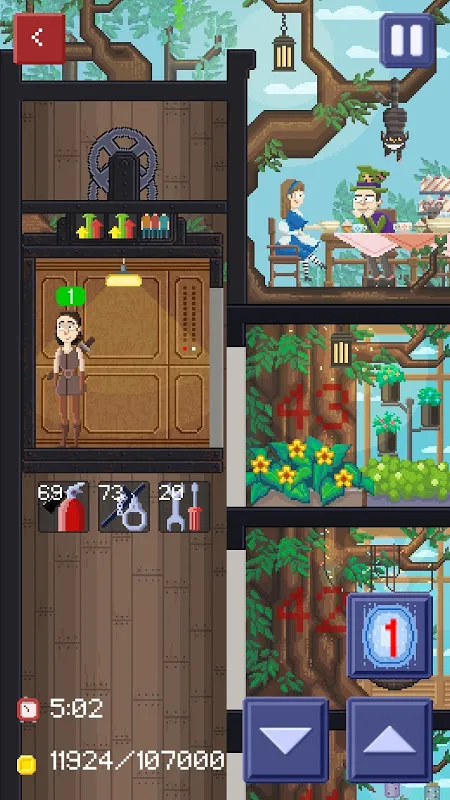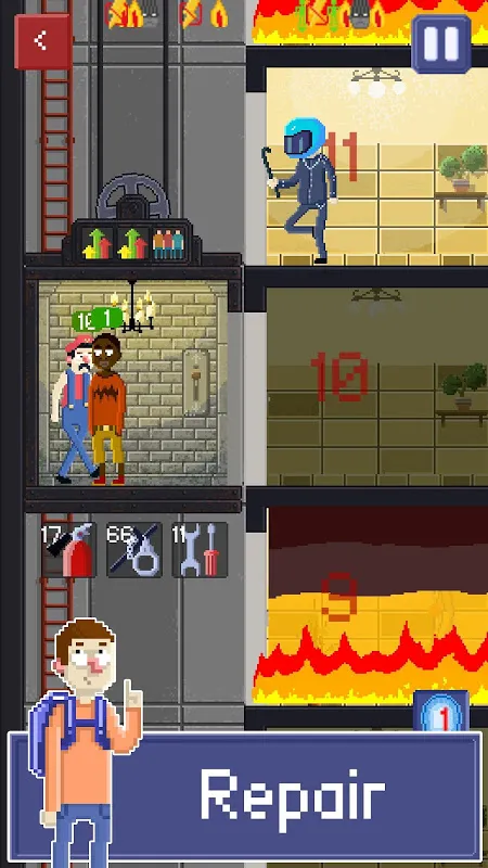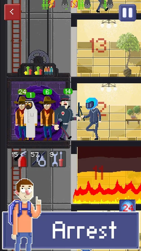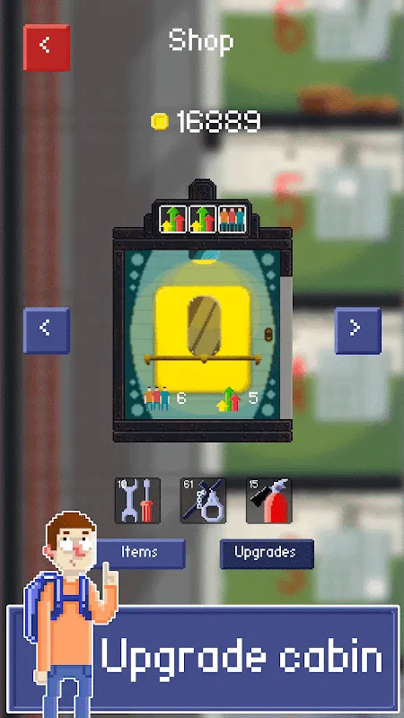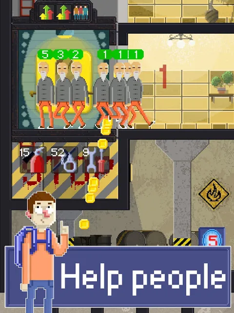 For every good deal passengers reward you with money. You can spend them on good items like handcuffs, tools or extinguishers. Also you can upgrade your elevator and buy super buffs like: