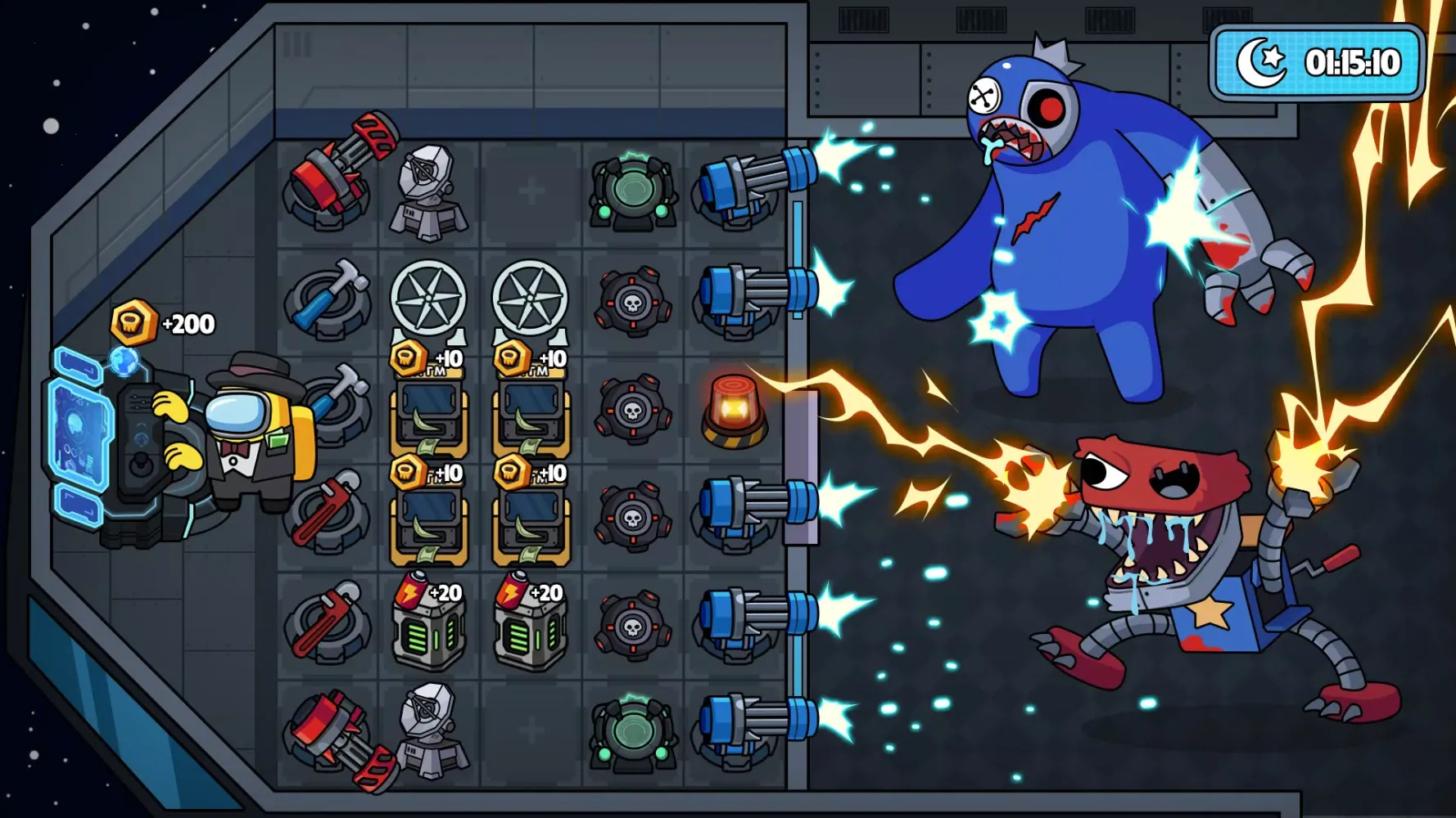 As night falls, Imposter finds himself stranded among spectral entities and fearsome foes. With time ticking away, your mission is to navigate through treacherous rooms, gather resources, and fortify your defenses. Each decision counts, as you must use your wits and strategy to collect as many coins as possible. These coins will enable you to upgrade your door, equipment, and defense systems, making it easier to defeat Choo Choo and his gang.