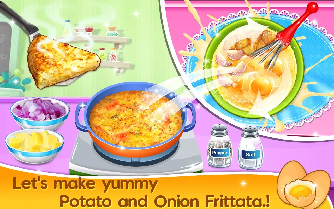 In Breakfast Maker 2, you'll experience the joy of crafting delicious breakfasts from scratch. Whether you're preparing Chocolate Zucchini Bread, Cinnamon Rolls, Pancakes, Mini Muffins, Pita Pizza, Potato & Onion Frittata, or Sour Cream Donuts, each dish is a step towards a more energetic and healthy day.