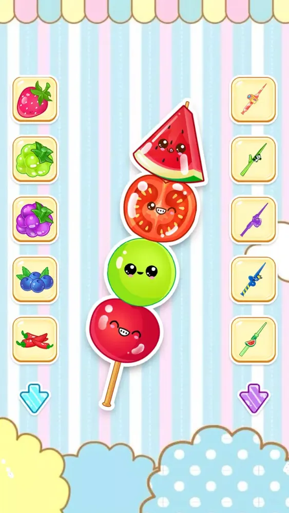 In this unique application, you can immerse yourself in the process of making tanghulu. Start by dragging the fruits onto the screen; they transform into beautifully coated sugar fruits before your eyes. Each mission presents a new challenge where you can select from an array of colorful skewers and various fruits. As you progress through the levels, new and exciting fruits are unlocked, adding to the fun and creativity of your experience.