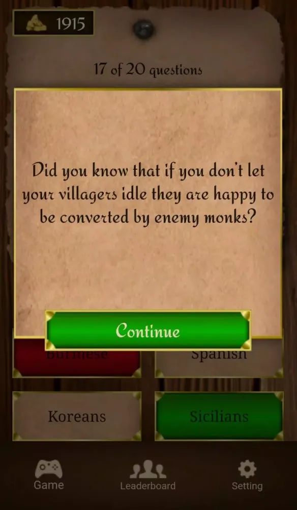 One of the standout features of this app is its motivational touch—every correct answer comes with an inspiring quote from the world of Age of Empires 2, adding a layer of nostalgia and excitement as you progress. Additionally, the leaderboard functionality allows you to compare your scores with other players around the globe, fostering friendly competition and encouraging you to improve your ranking. If you're ever stuck on a tough question, the leaderboard serves as a reminder of how far you've come and motivates you to push harder.