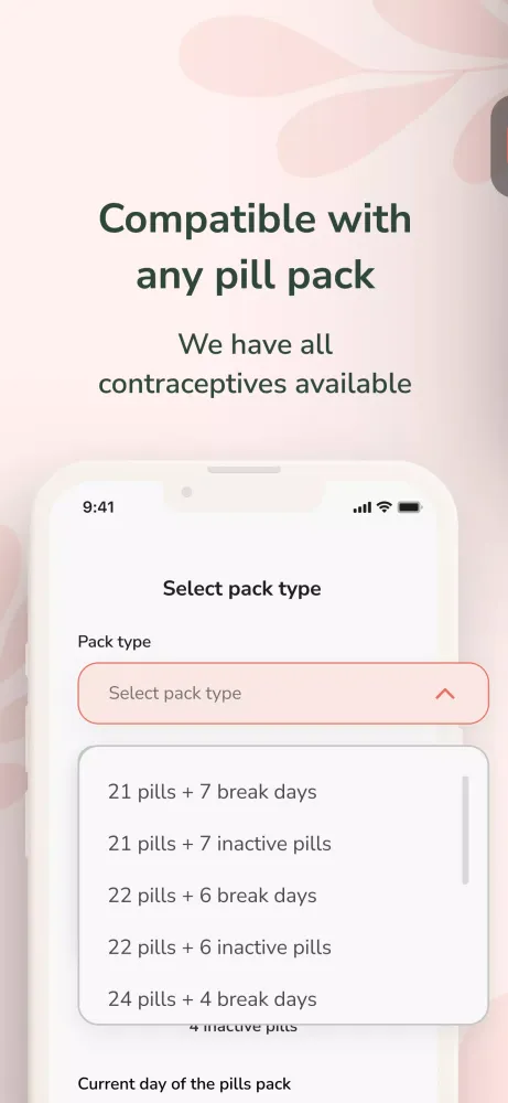 - New Pack Alert: Receive timely alerts to remind you when it’s time to purchase a new pack of contraceptive pills.