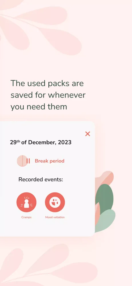 - Menstrual Calendar: Stay informed about your menstrual cycle. Plan ahead with a comprehensive calendar that includes your breaks and inactive days.