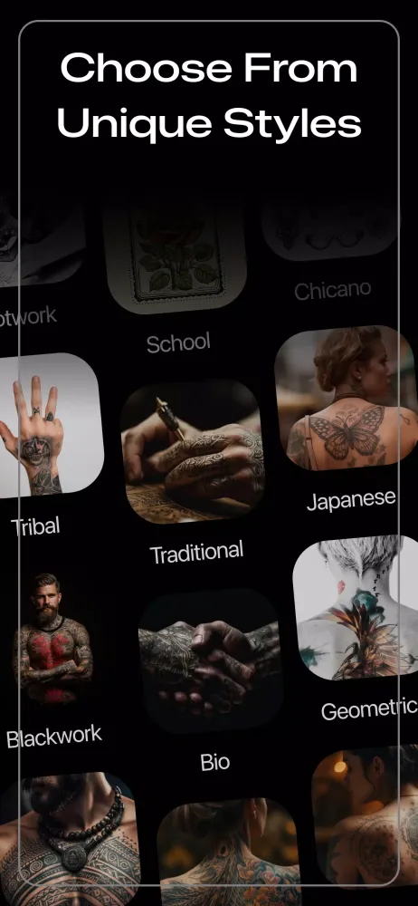Finding the perfect tattoo design can be overwhelming. Tattoo AI simplifies the process by generating designs that match your ideas and style preferences. Whether you're looking for inspiration or a final design, our app takes the guesswork out of tattoo creation.
