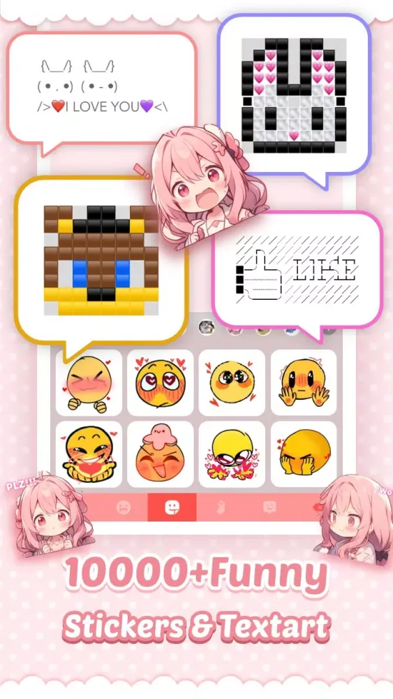 This keyboard is not just about style; it's also about functionality. The Pink Cute Hippo Keyboard includes a wide range of emojis, stickers, and hot and creative fonts that allow you to express yourself in a variety of ways. Type fancy texts on all your favorite social media platforms with ease. Additionally, the latest trending emojis, GIFs, emoticons, and stickers are available for convenient use across any application.