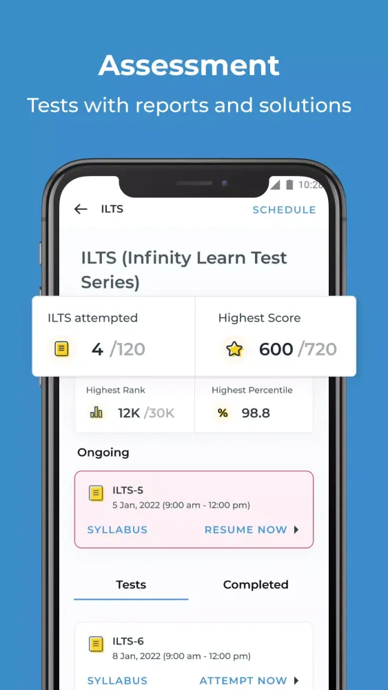 - Practice Tests: A variety of tests, including mock tests, sample papers, previous year papers, and chapter tests, with detailed performance analysis.