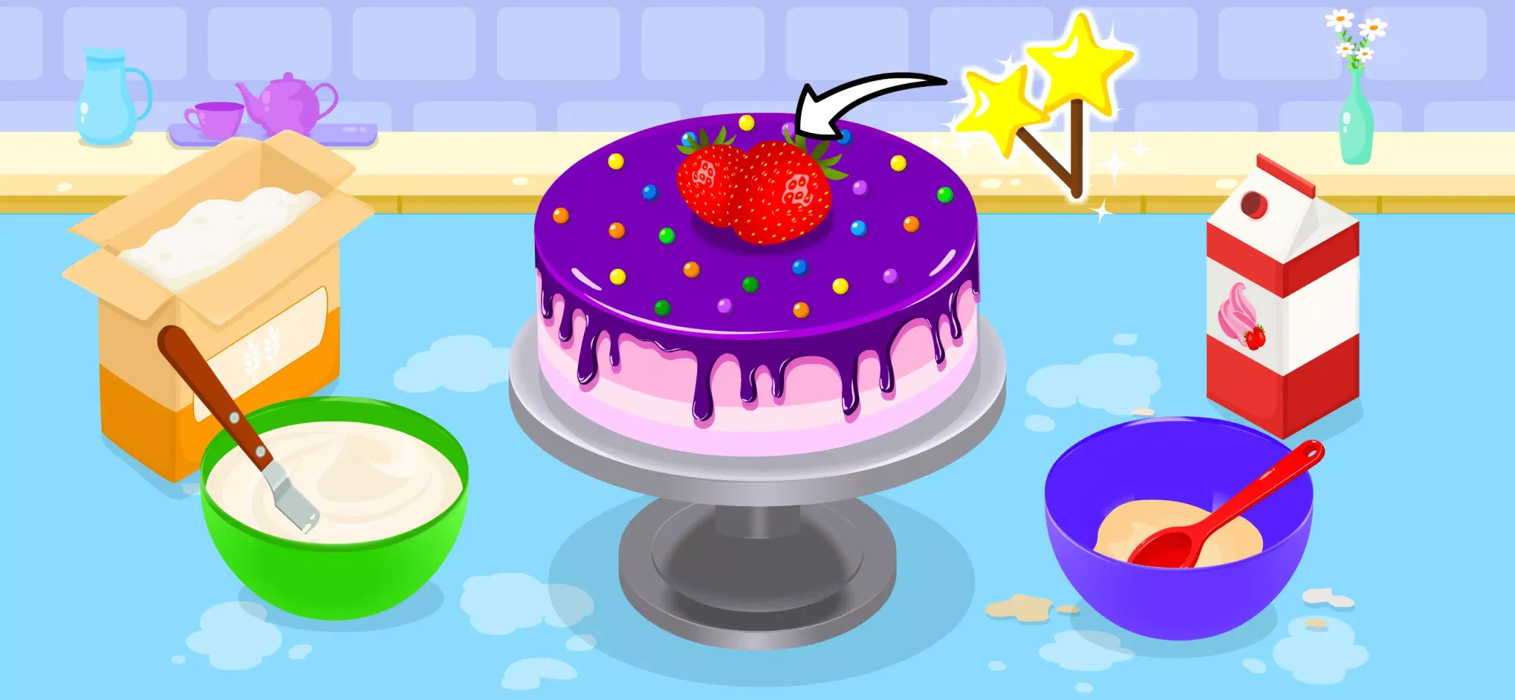 Prepare for a delightful baking adventure with the Cake Baking Game! Kids and toddlers will learn the art of cake decoration as they select the perfect cake base, spread delicious frosting, and adorn it with an assortment of delectable toppings and edible cake decoration items. Celebrating a happy birthday or special occasion with this cake baking game will inspire kids to celebrate their creativity while mastering the art of cake decoration.