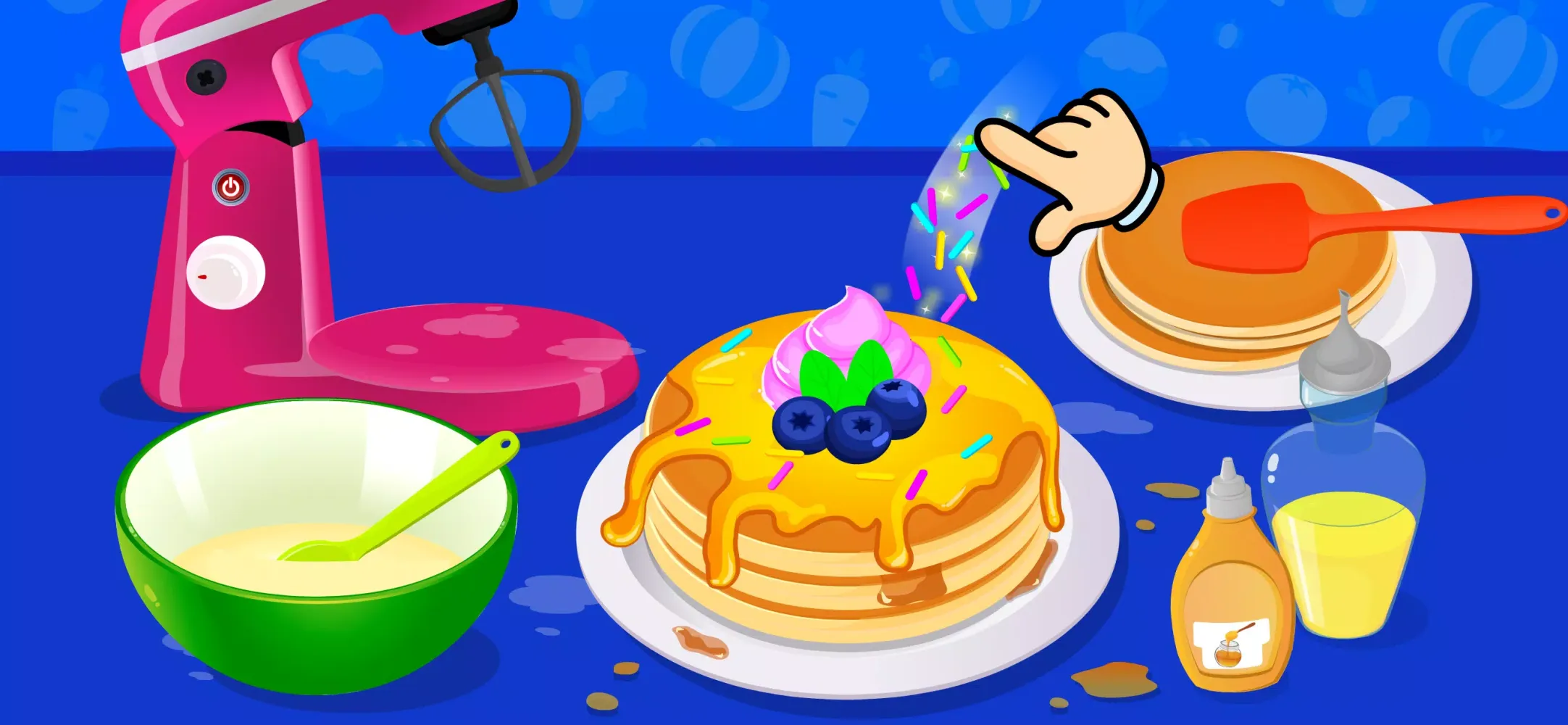 Breakfast just got a whole lot more fun with the Pancake Maker game! Your little masterchef will explore the world of pancake making, from whisking the batter to flipping the pancakes like a pro. With an array of syrups, fruits, and other delectable toppings, kids can craft mouthwatering pancake stacks that would make even a professional chef proud. Kids and toddlers can play these pancake maker games and have unlimited fun!