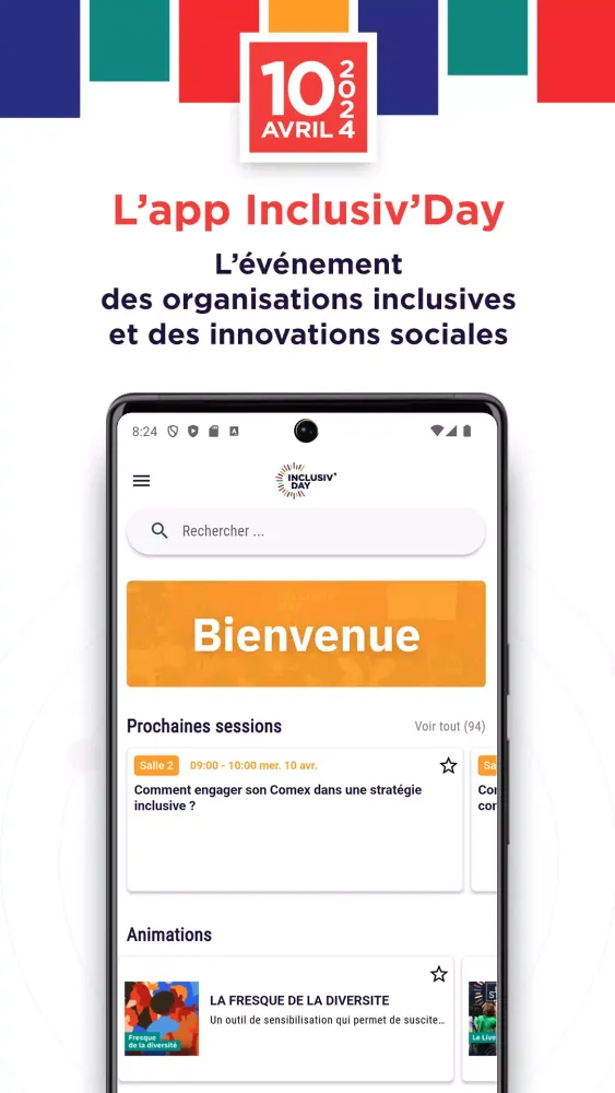Inclusiv'Day is not just an event; it's a movement dedicated to fostering inclusivity and innovation within organizations. Designed as the premier platform for those committed to creating socially impactful solutions, Inclusiv'Day brings together visionaries, leaders, and changemakers under one virtual roof. This application serves as the essential companion for anyone eager to engage deeply with the mission and purpose that define Inclusiv'Day. Whether you're attending in person or remotely, the app ensures you stay connected, informed, and inspired throughout the event.