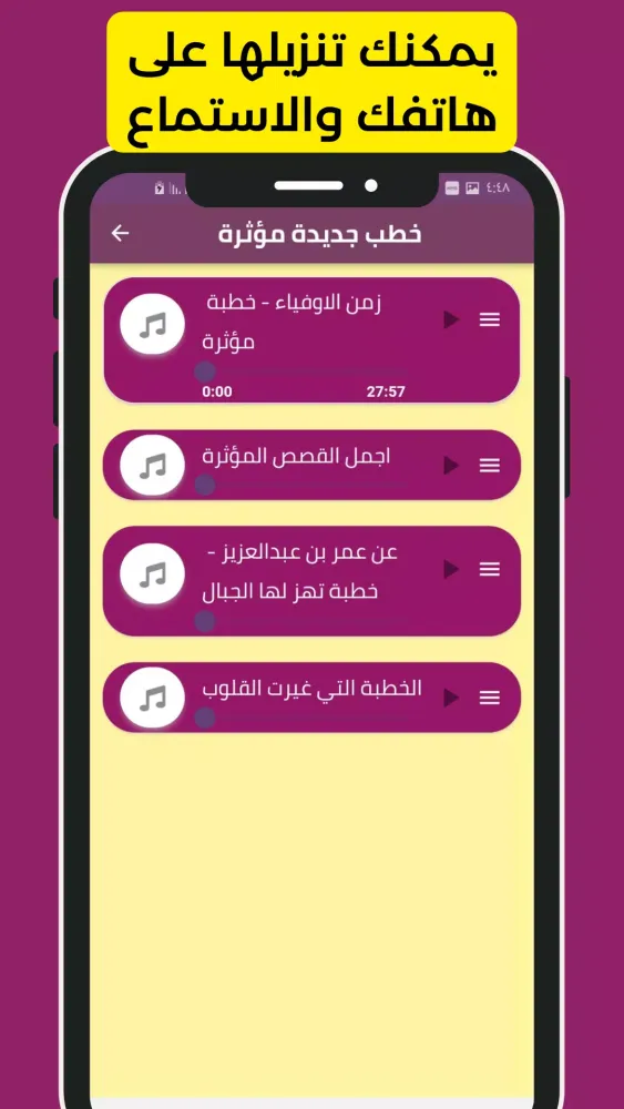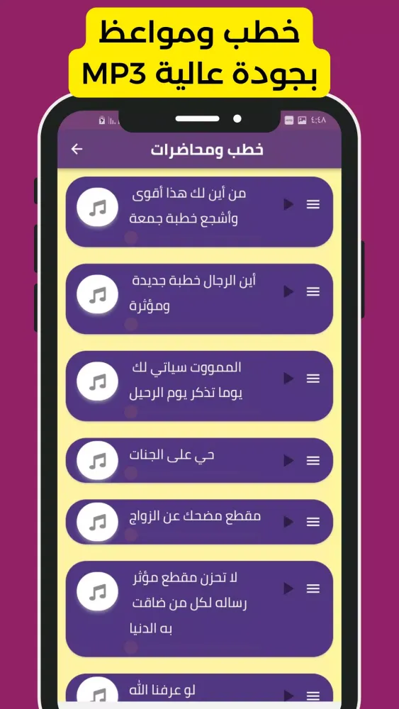 The application includes a wide range of topics and themes covered in Sheikh Mahmoud Al-Hasanat's sermons. From insightful teachings on faith and life to poignant reflections on historical figures such as Umar ibn Al-Khattab, the app covers it all. Each sermon is designed to resonate deeply with listeners, offering words that touch the heart and inspire action.