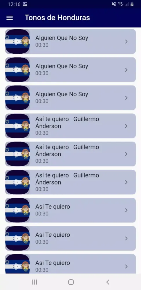 The app features a rich library of ringtones, including popular songs, special notifications, and alarm tones. Each tone is carefully curated to provide an immersive experience. Enjoy the delightful mix of instruments such as flutes, harps, accordions, and guitars. Browse through a variety of melodies and rhythms, ensuring there's something for everyone. With easy-to-use search functionality, finding your favorite Honduran tones has never been easier.