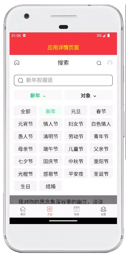 The app covers an extensive range of celebrations, from traditional Chinese holidays like the Spring Festival and Mid-Autumn Festival to international events such as Valentine’s Day and Christmas. Additionally, there are unique festivals like the Lantern Festival, Dragon Boat Festival, and even lesser-known days like Singles’ Day (November 11th). Each message is crafted with care to ensure that they resonate with both the sender and receiver, making every celebration more meaningful.