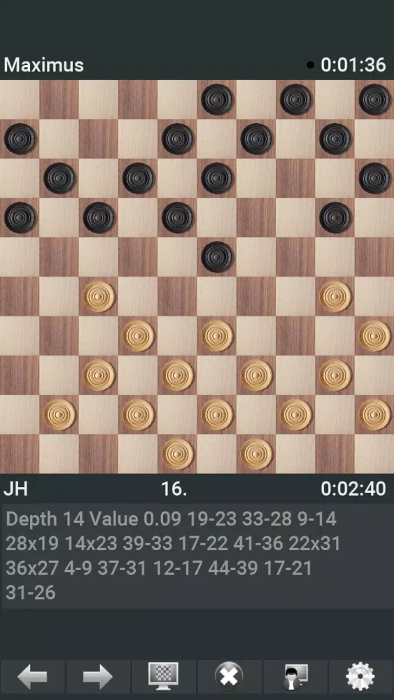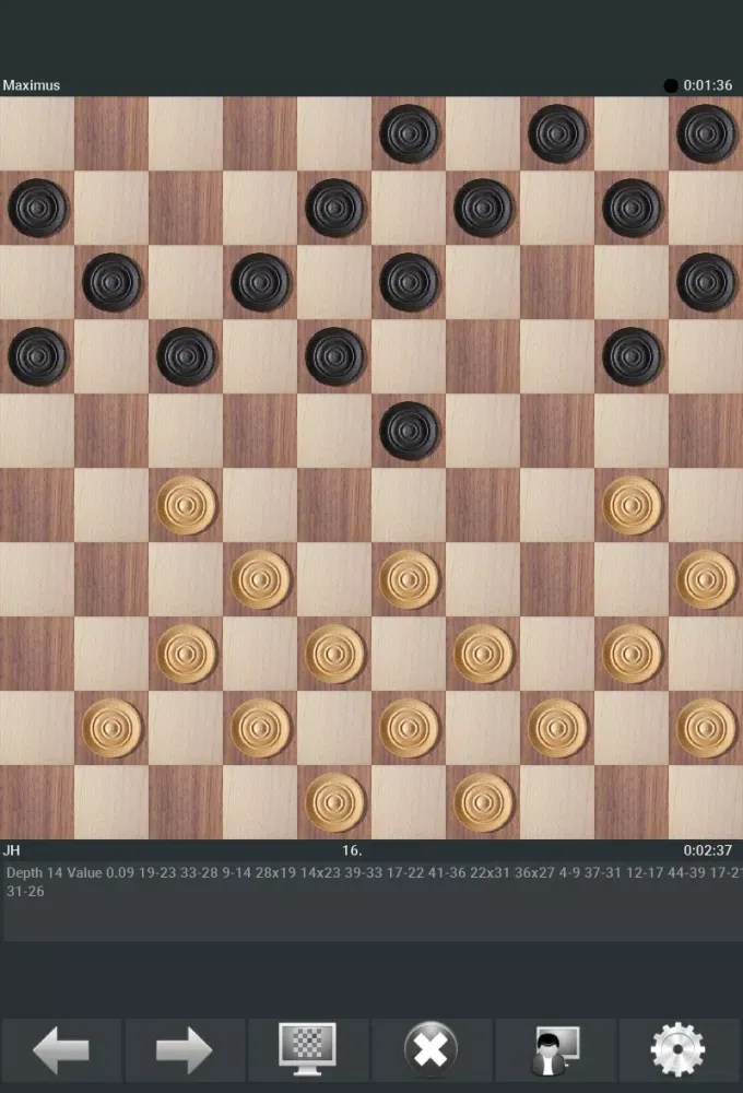 The app boasts several advanced features like multicore processor support, pondering (thinking during the opponent's turn), and various playing modes such as seconds per move, time schedules, and the Fischer system. Players can interact with the intuitive interface through drag-and-drop mechanics or simple taps. Furthermore, Maximus allows saving, loading, emailing, and importing games in Portable Draughts Notation format (PDN), ensuring compatibility across platforms.