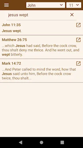 Search in Bible verses and get results instantly. No Internet required.