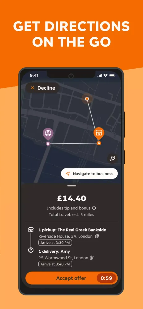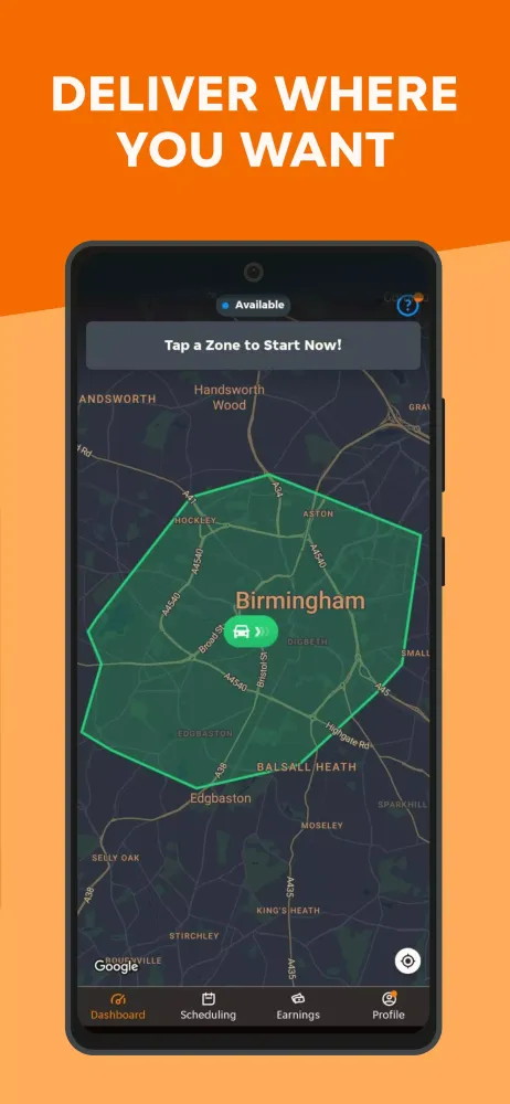 - Track your earnings per delivery.