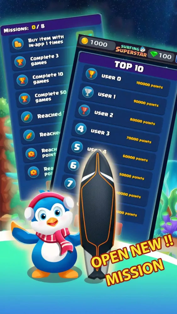 "Penguin Surfer" is a thrilling and engaging game that invites you to step into the paws of an adventurous little penguin. In this exciting journey, your mission is to help the penguin navigate through a series of challenging levels while avoiding various traps and obstacles. The game's concept is simple yet addictive, as it combines the thrill of surfing with the need for quick reflexes and strategic thinking. The phrase "Help him escape the dream" sets the tone for an immersive experience where you play the role of a savior, guiding the penguin toward freedom.