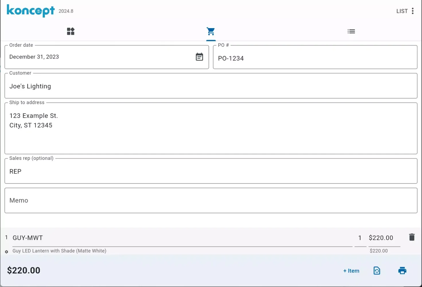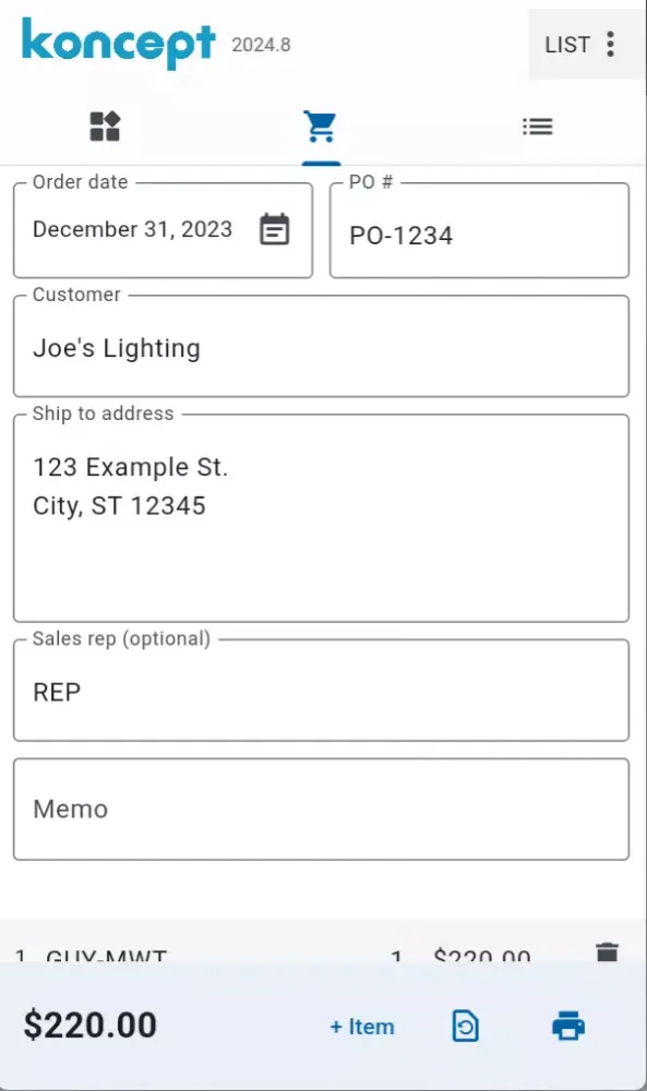 By default, the application displays list prices for all products. However, for users who require access to additional price levels, it is recommended to contact the Koncept sales team. Unlocking these price levels allows for the creation of orders at the appropriate pricing tier, ensuring accuracy and satisfaction for both the sales associate and the customer.