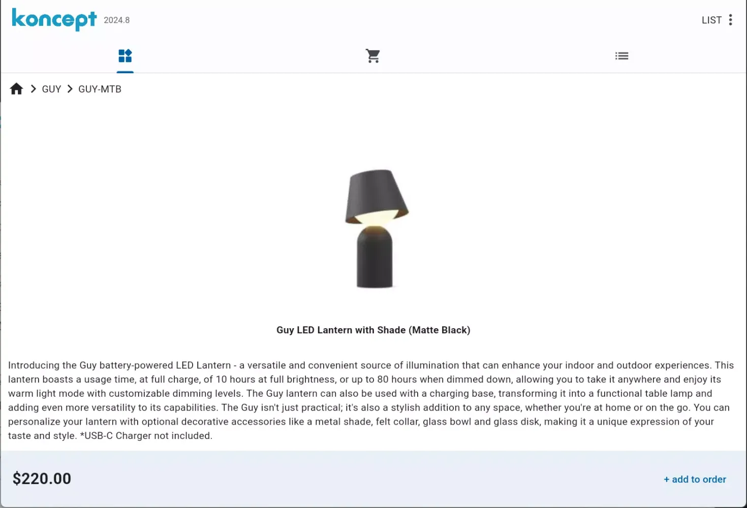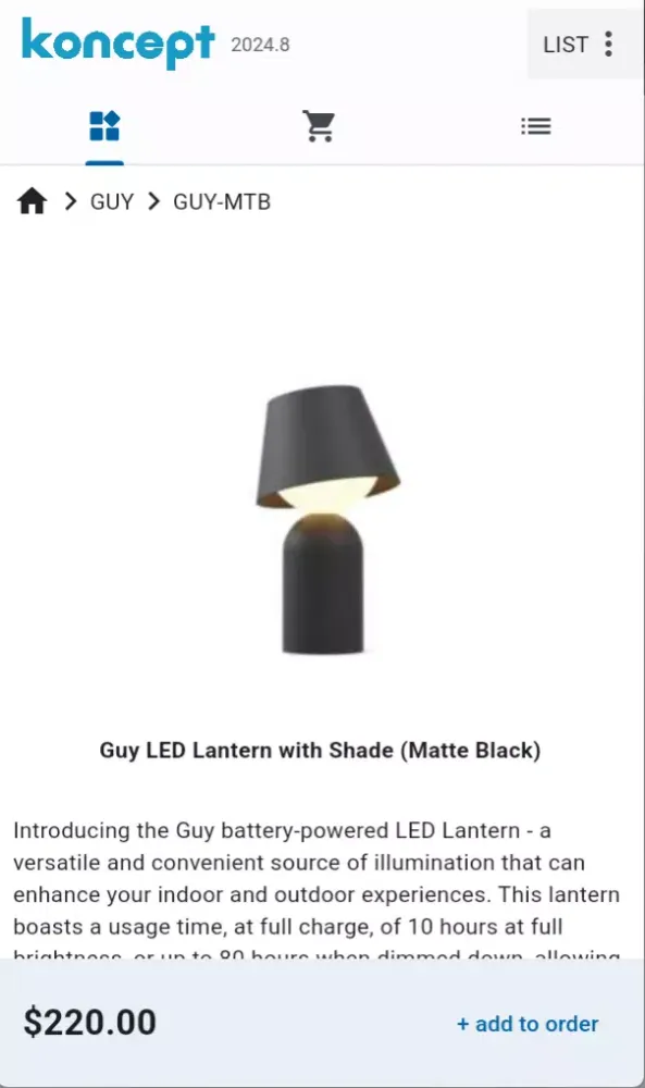 In summary, the Koncept Catalog application provides a seamless and efficient way to browse, select, and order products directly from Koncept. Whether you are a sales associate looking to provide a better customer experience or a customer seeking detailed information and a straightforward ordering process, this application caters to all your needs.