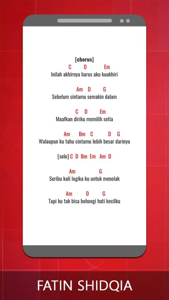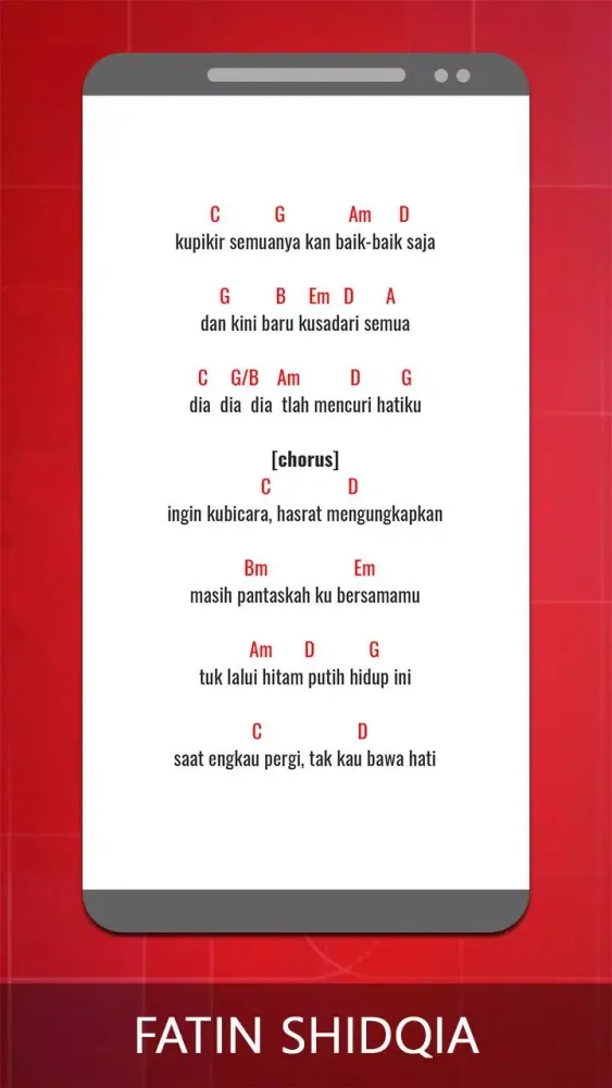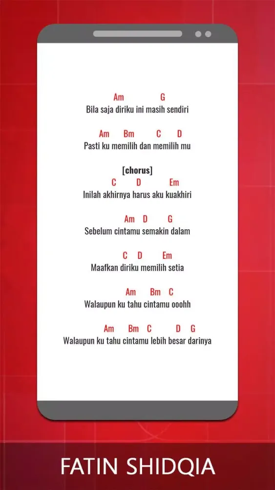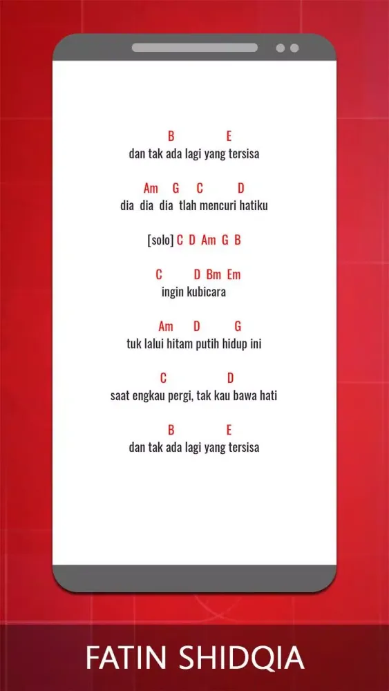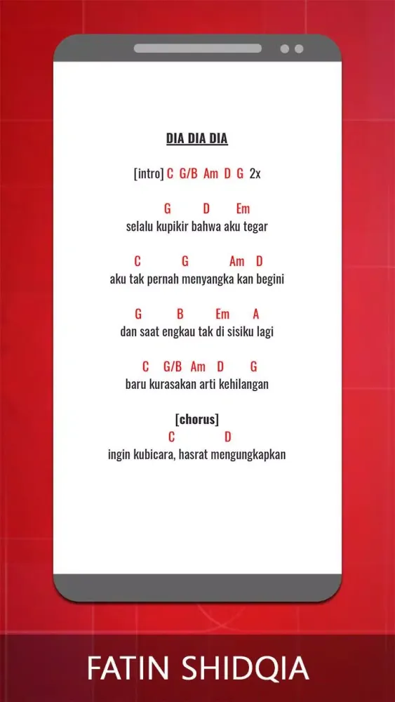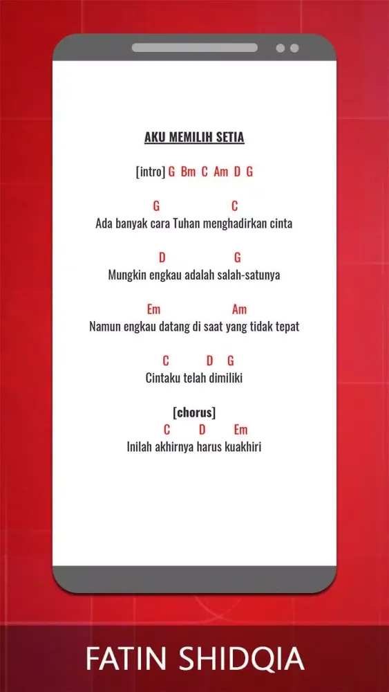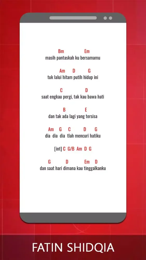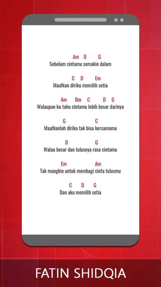This application provides a comprehensive collection of guitar chords and lyrics for the songs of Fatin Shidqia. Whether you're a beginner or an experienced guitarist, this app is designed to help you play your favorite tunes effortlessly.