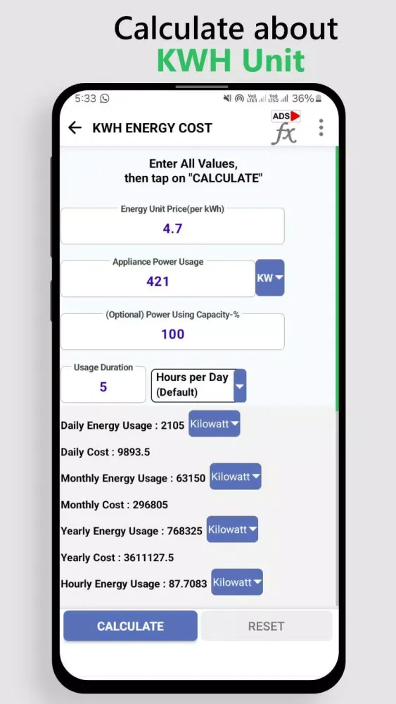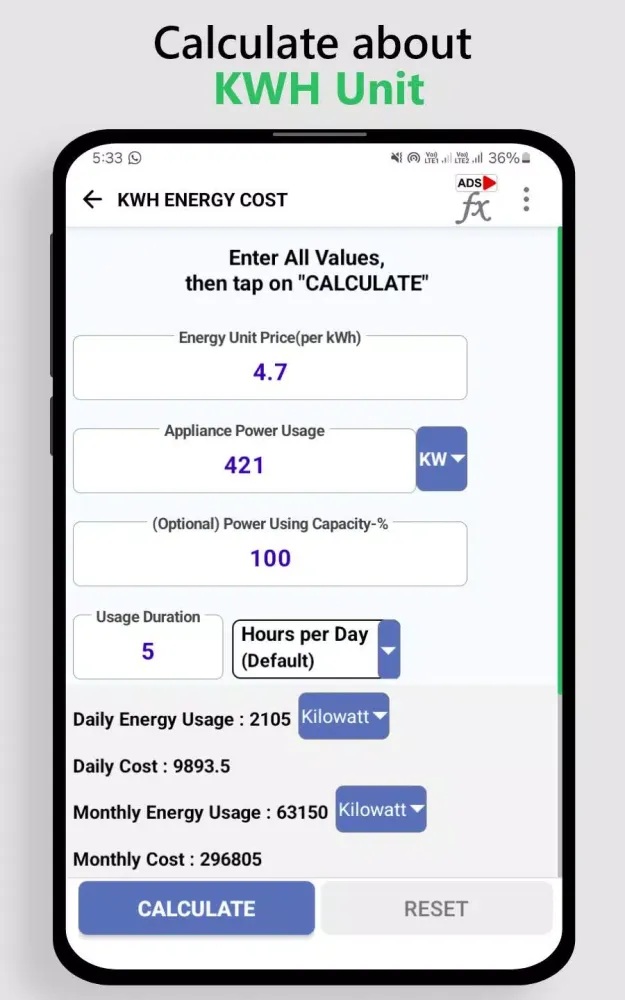 About KWh Unit Calculator