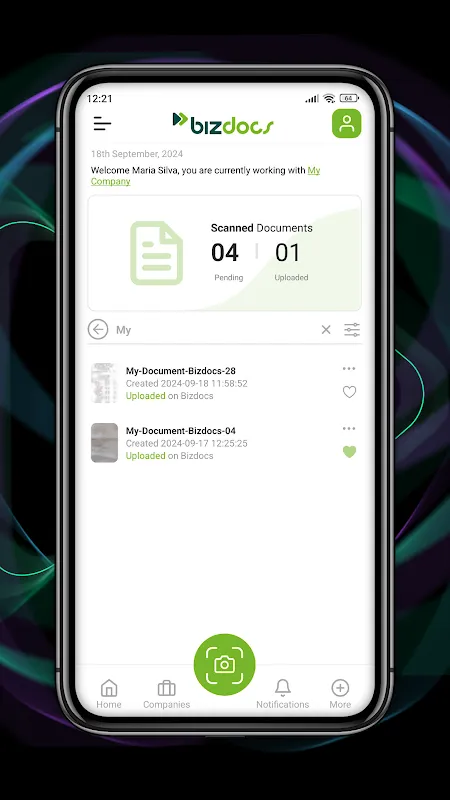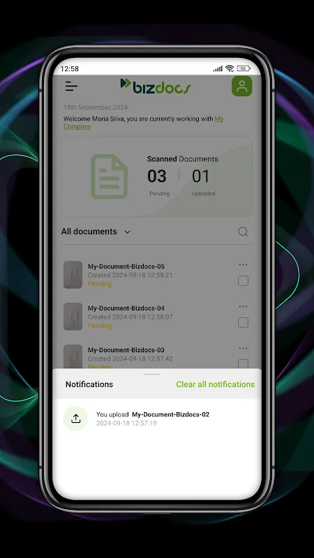 With Bizdocs Mobi, you can use your phone's camera to automatically detect and capture documents. The app ensures accurate captures, allowing you to upload documents quickly and efficiently. No more manual scanning or fumbling with paper documents!