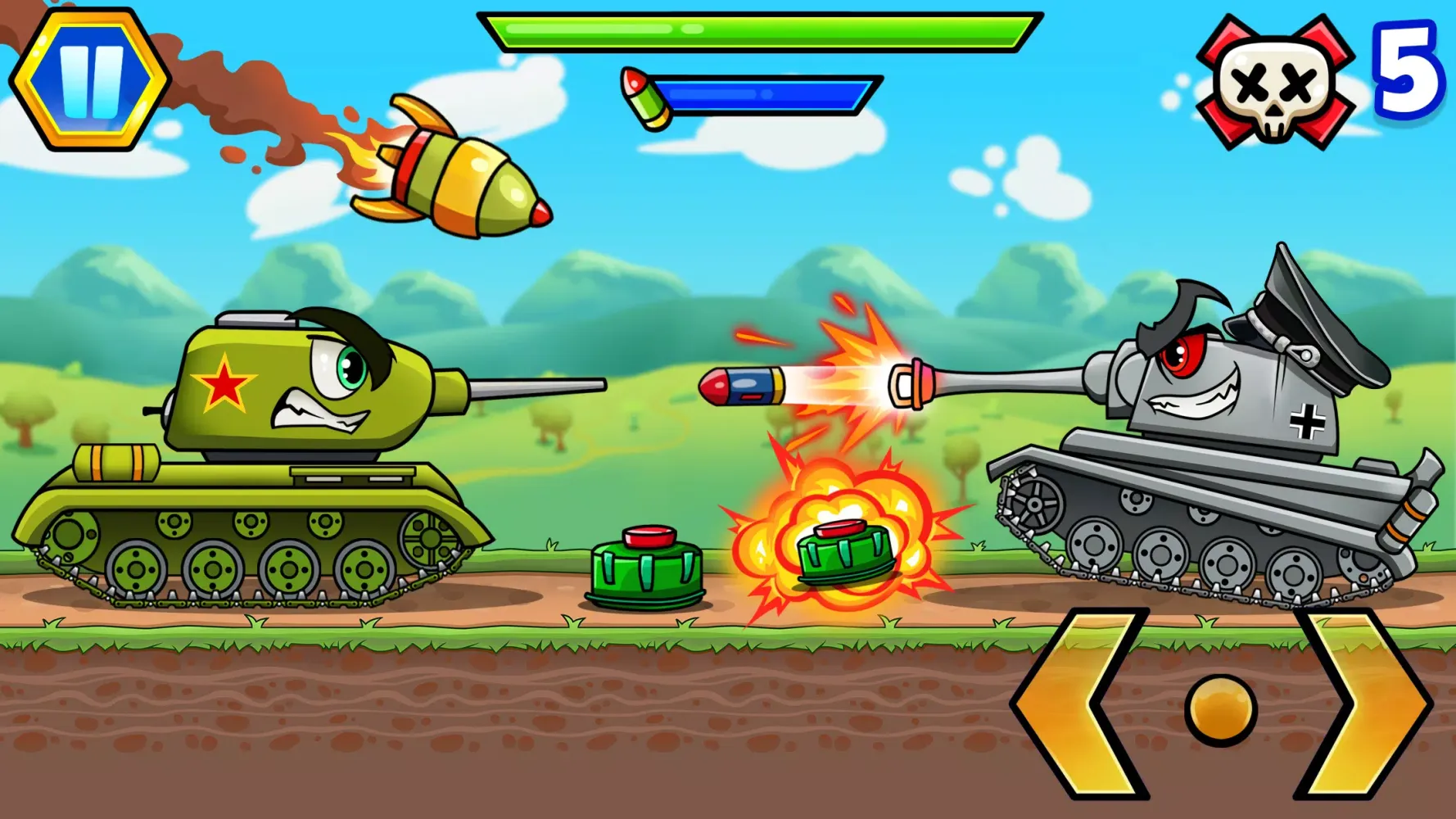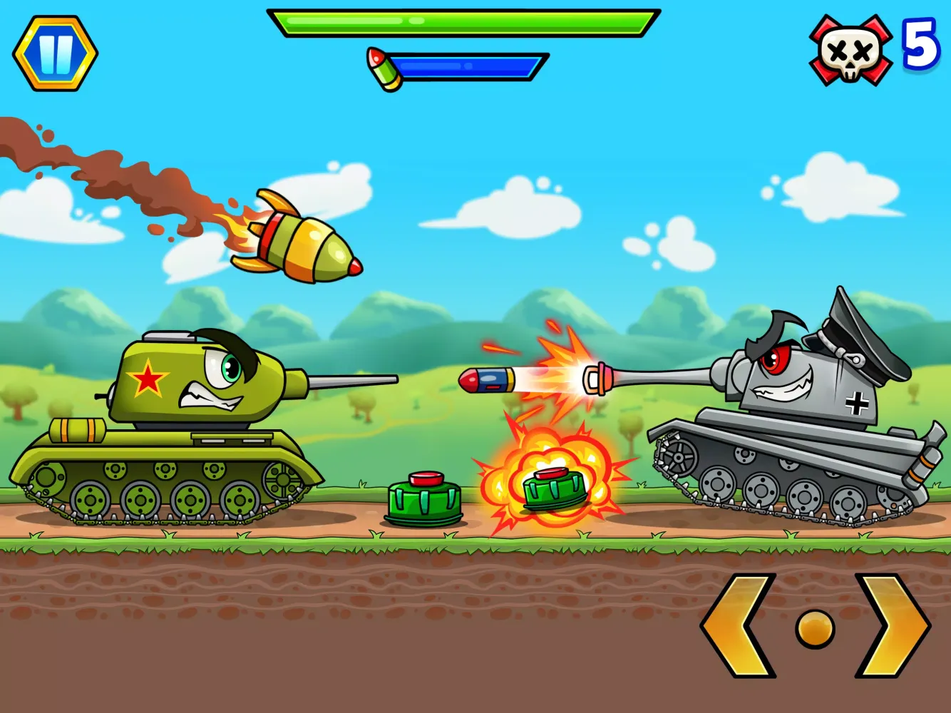 Tank Games, also known as "2D Tanks," is an exhilarating 2D cartoon-style tank game that brings back the nostalgia of classic tank battles. With its vibrant and colorful 2D graphics, the game immerses players in a world where they can unleash their inner strategist and enjoy hours of entertainment. The game's design is simple yet captivating, making it accessible to both casual gamers and those who crave more complex challenges.