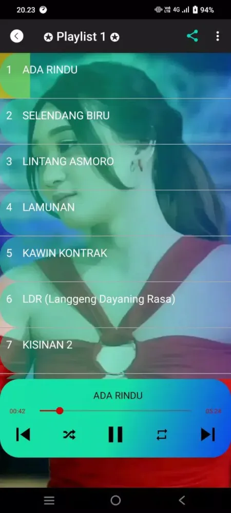 Our application allows you to enjoy all the latest Dangdut Koplo songs offline. With very clear sound quality and full bass, you can immerse yourself in the music without worrying about your internet data usage. This makes it perfect for when you're traveling or in areas with limited connectivity.