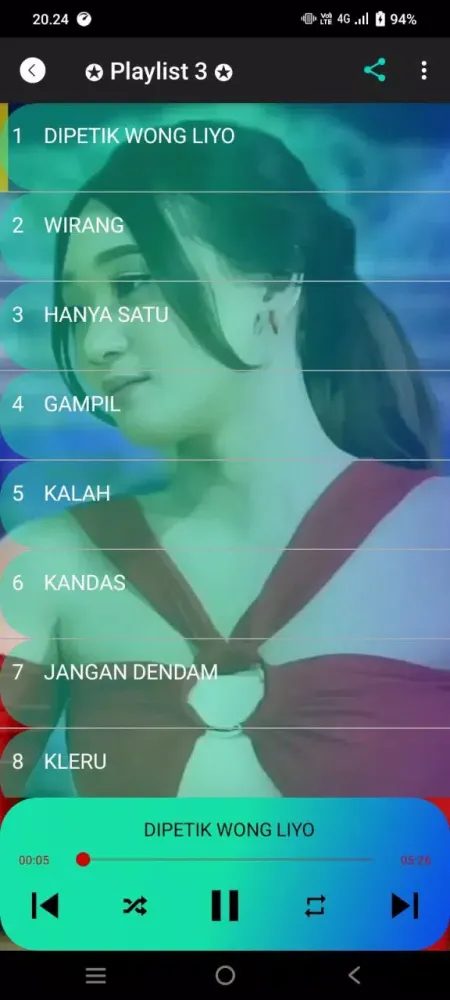 Enjoy a wide range of popular Dangdut Koplo songs, including hits like "Sekti," "Blue Shave," "Lanang's Child," and many more. The playlist includes a variety of artists such as Difarina Indra, Tasya Rosmala, Lusyana Jelita, and many others, ensuring there’s something for everyone.