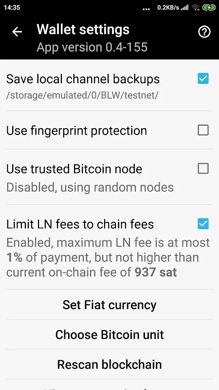 - Access to local file system (optional): to store an encrypted channel backup file.
