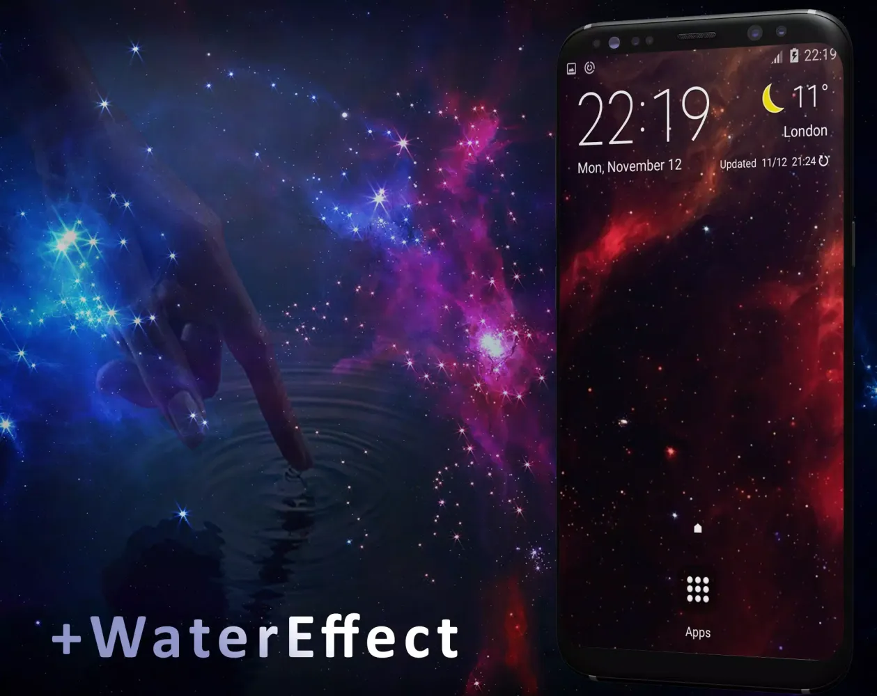 Experience the mesmerizing beauty of the cosmos and the tranquility of crystal-clear water with the "Galaxy Live Wallpaper" application.
