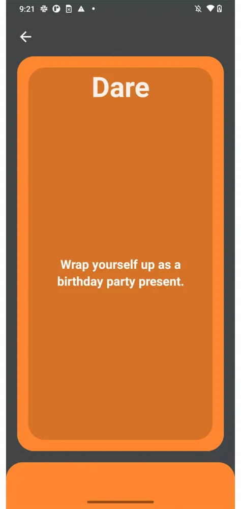 At its core, "Truth or Dare (Retro) - Adults" offers an immersive experience that combines classic gameplay mechanics with modern convenience. With over 1000 thoughtfully crafted questions, the game ensures that no two rounds feel alike. These questions are divided into various categories, including kid-friendly versions, making it versatile enough for diverse audiences. If you're feeling adventurous, long-clicking on either the "Truth" or "Dare" option reveals a selection of risqué challenges—perfect for those who crave a little spice in their gaming sessions. Additionally, the app features a unique shake-to-reveal mechanism, allowing players to receive fresh prompts by simply shaking their devices. This feature adds an element of unpredictability, ensuring that every round remains exciting and spontaneous.