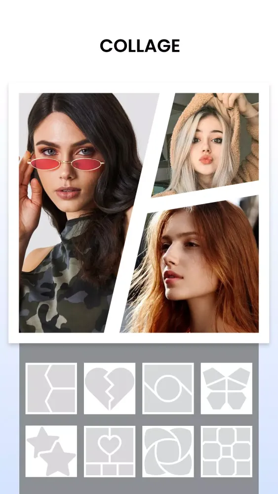 - Collage Creation: Combine up to 20 photos into unique collages using 200+ layout options.