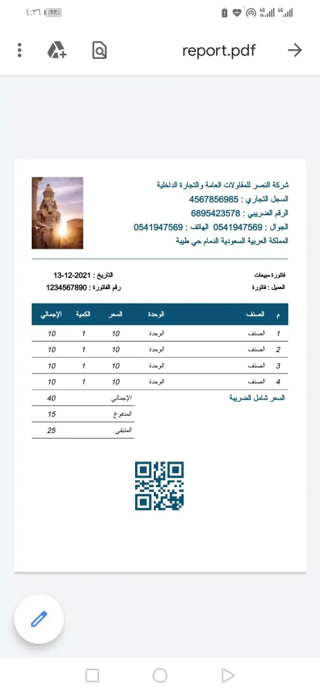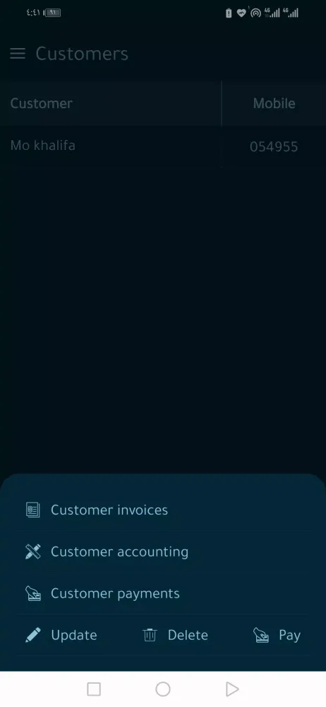 The statistics feature provides valuable insights into the business operations, including the number of customers, invoices, items, sold quantities, total sales, total supplies, and total receivables. Furthermore, the application allows users to share reports, invoices, and account statements directly via the customer’s WhatsApp.