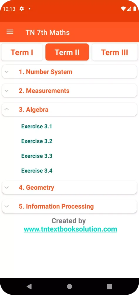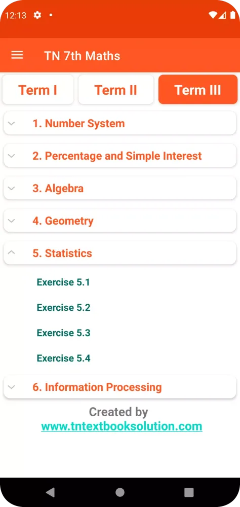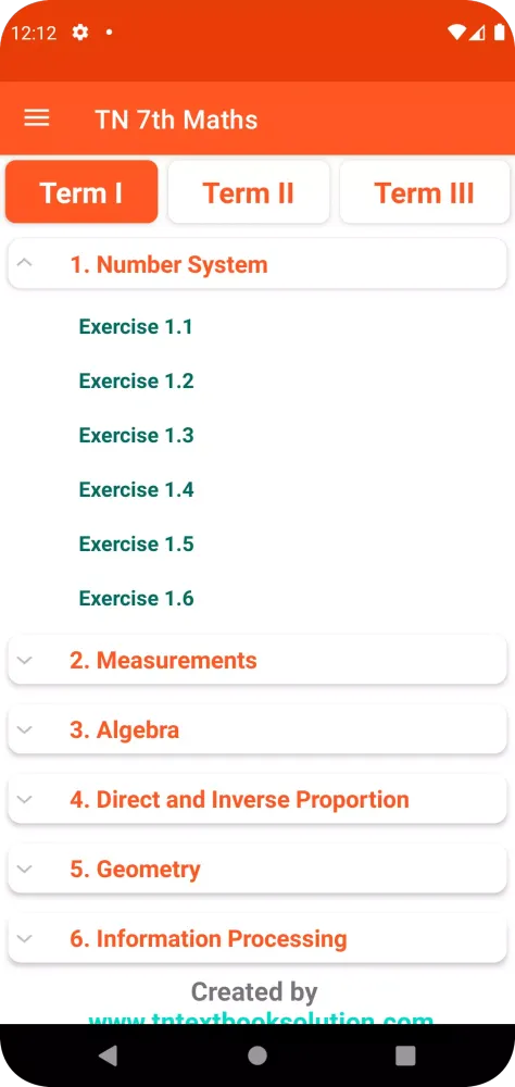 The "TN 7th Maths Guide" is an invaluable resource designed to support students following the Tamil Nadu State Board curriculum for 7th grade Mathematics. This guide offers a detailed exploration of all the topics covered across three terms, ensuring that students have access to comprehensive solutions and explanations for their textbook exercises. Whether you're preparing for exams or seeking clarity on complex concepts, this app serves as an essential companion for every student.