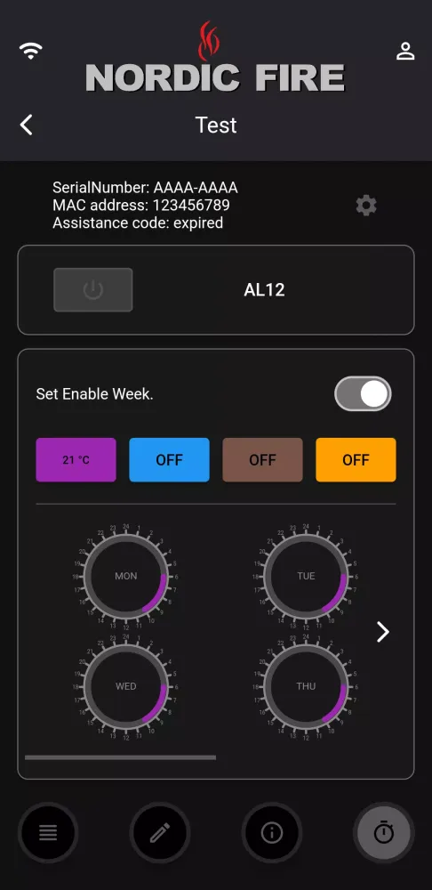 With Nordic Fire 2.0, you can manage your pellet stove from any location, ensuring maximum comfort and efficiency. The app's clear and intuitive menu structure makes navigation a breeze. You will always have updated information about the current status of your pellet stove, no matter where you are. Additionally, the app will notify you when the pellets are running low, so you never run out unexpectedly.