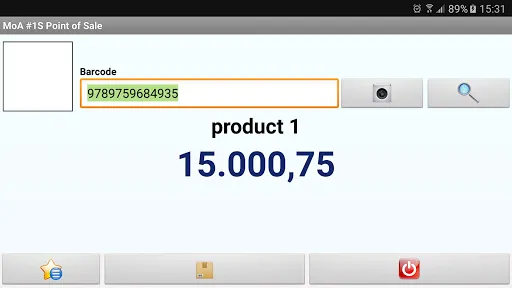 ●Display photo, name and price of the product largely on the screen by the help of "show price" section as the barcode of the product is read by device camera or by an external barcode reader or chose the product from the list.