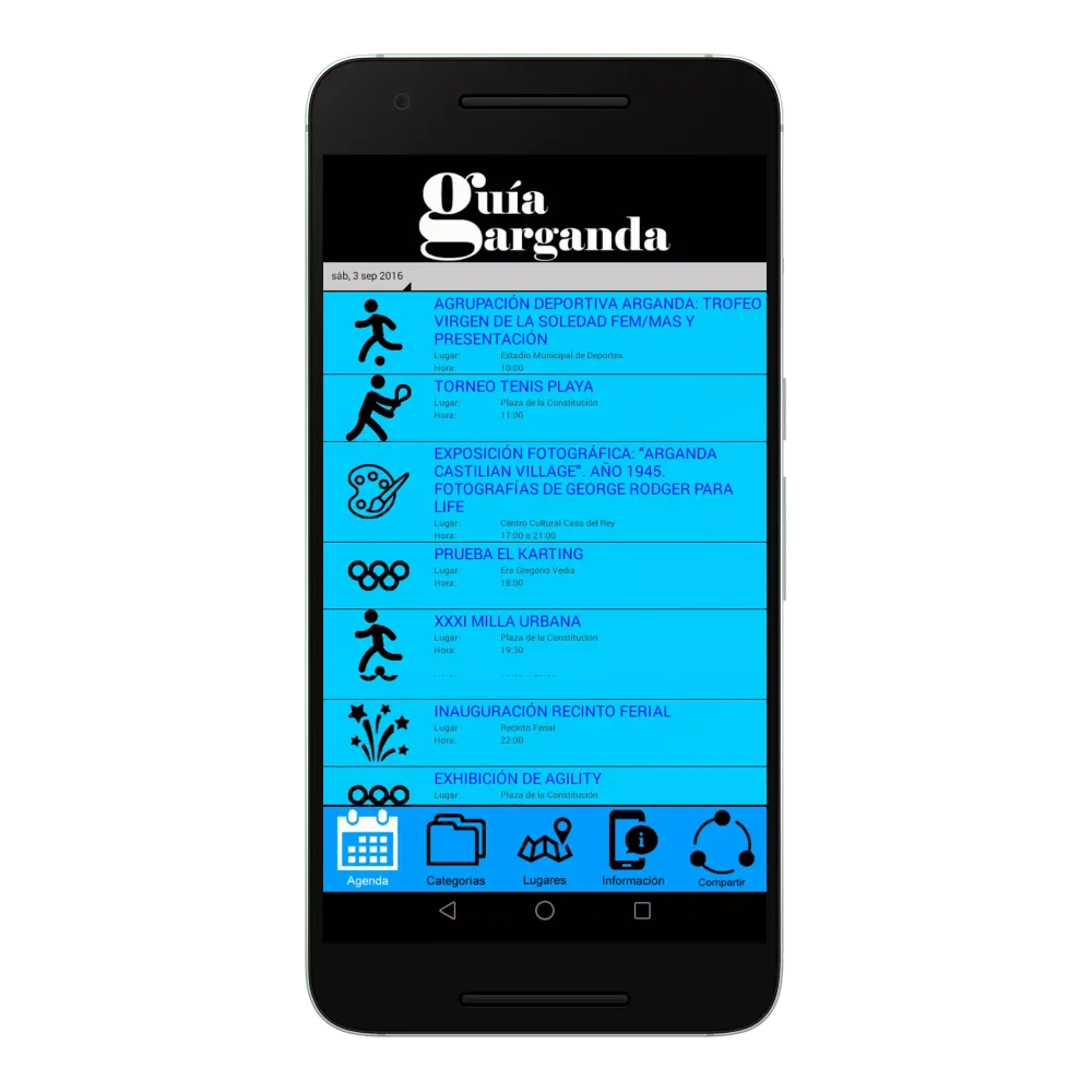 - LUGARES: Find venues hosting scheduled events.
