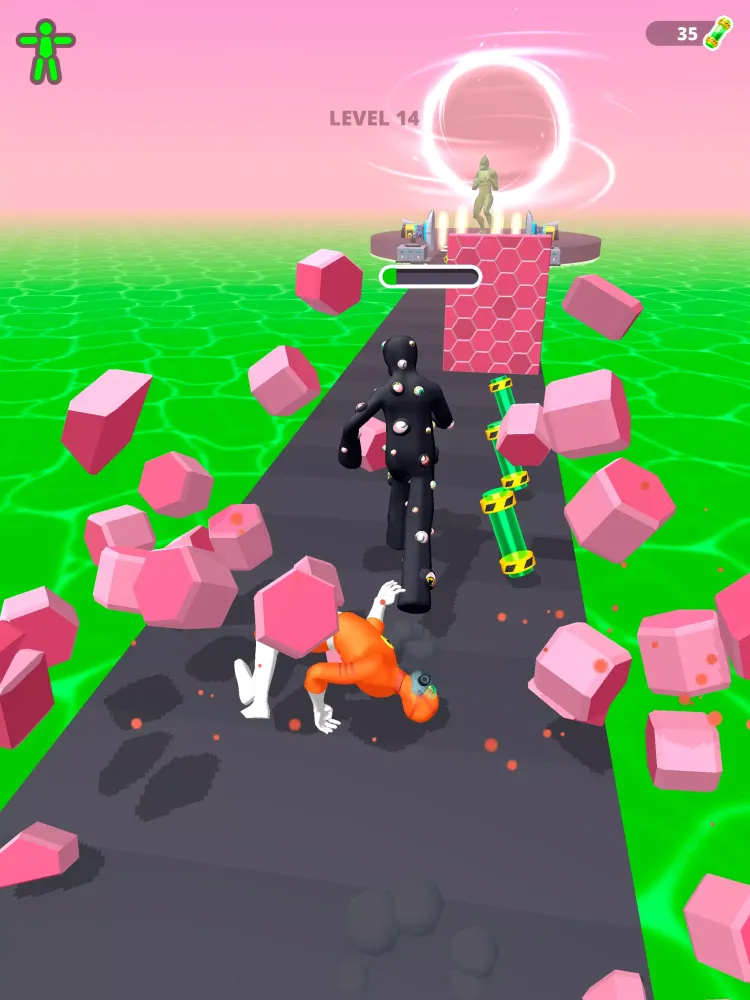 On your marks, get set, and the race 🏃 is on! Your goal is to complete the transformation of your monster before reaching the finish line. Dodge barrels, knock back the killjoy nuclear cleanup team, and sprint through the right gates to merge the DNA of each part of your monster runner. Can you impress the judges and get full marks for your crazy science project? Find out in this super fun and original running game 🔥.