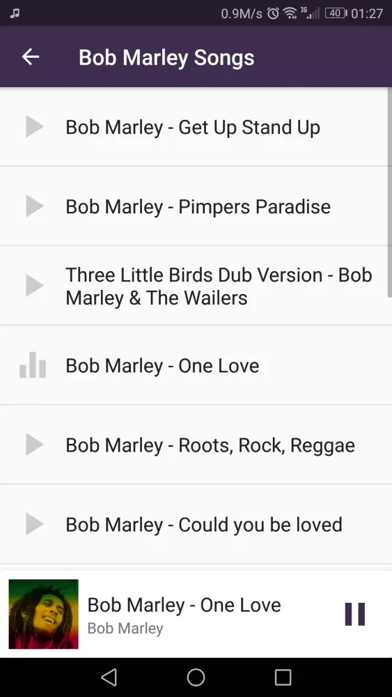 This app features an extensive collection of Bob Marley's timeless tracks, including iconic hits like "One Love," "No Woman No Cry," and "I Shot the Sheriff." Each song is available in high-quality MP3 format, allowing you to immerse yourself in the rhythm and lyrics that have captivated audiences for decades.