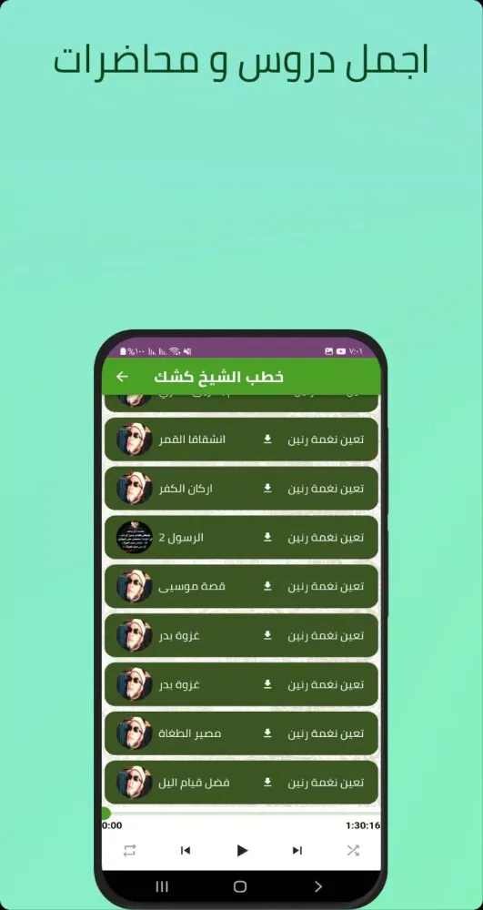 Designed and programmed to be compatible with all Android devices, old and new, this application ensures a seamless experience across various devices. The lectures and sermons are provided in high-quality audio, enabling you to enjoy the most beautiful speeches by Sheikh Abdul Hamid Kishk without an internet connection in 2022. The application also allows you to download lessons and sermons for free without an internet connection and offers many other fantastic features.