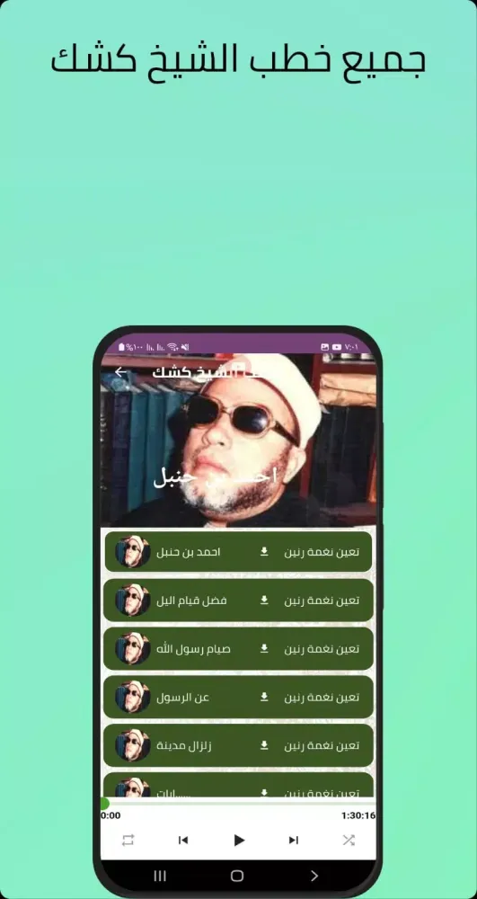 The app contains all the sermons and lectures delivered by Sheikh Kishk, ensuring that you can access them without an internet connection. You can download the sermons for free directly from our wonderful application or listen to them directly from the list without needing WiFi. Additionally, the app offers biographical information about Sheikh Kishk, allowing you to learn more about him even when you're offline.
