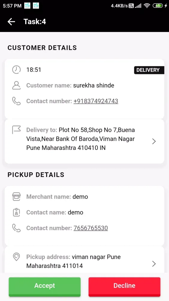 Once an order is assigned to a driver upon acceptance by the merchant, the driver can easily accept or decline the order directly from the app. From there, the driver can initiate the shipping process or choose to cancel the order if necessary. The app provides real-time updates, ensuring that both the driver and the merchant are always in sync with the order status.