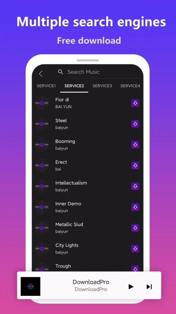 - Multiple Engines: Utilize various music engines to search for MP3 music songs.
