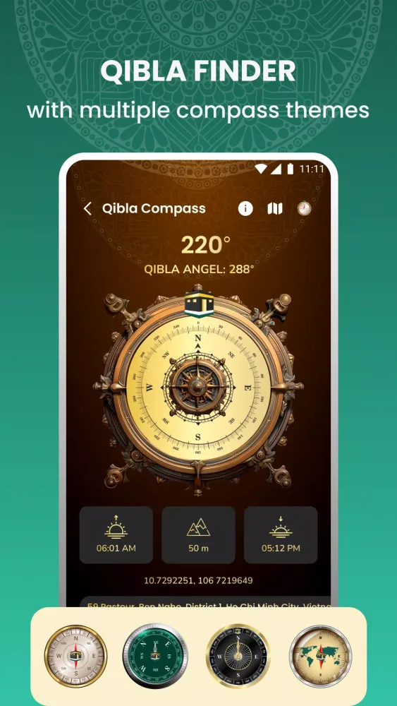 Qibla Direction: Never lose your direction again with our accurate Qibla compass, guiding you towards the sacred Kaaba no matter where you are in the world. The compass ensures that you always know the correct direction to face during prayers, providing you with peace of mind and spiritual clarity.