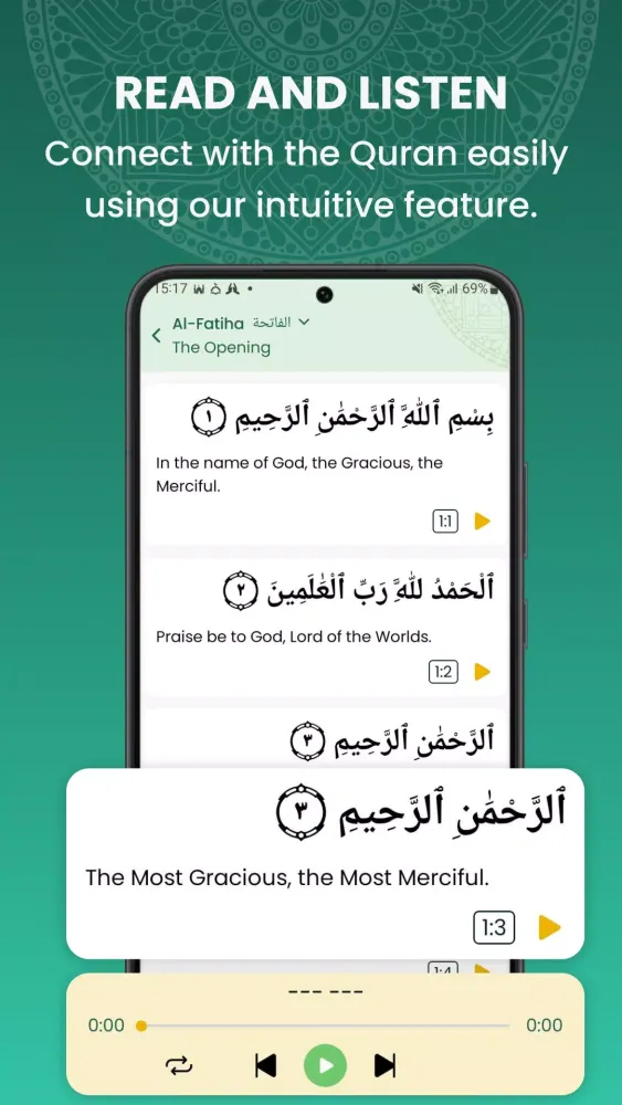 Quranic Wisdom: Dive into the divine teachings of the Quran with easy access to verses, translations, and audio recitations, enriching your spiritual journey wherever you go. The app provides a wide range of translations and recitations to cater to different preferences and needs.