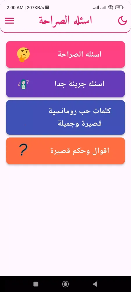 لعبة اسئله الصراحة is an incredibly engaging app that keeps me entertained for hours. The questions are thought-provoking and fun!