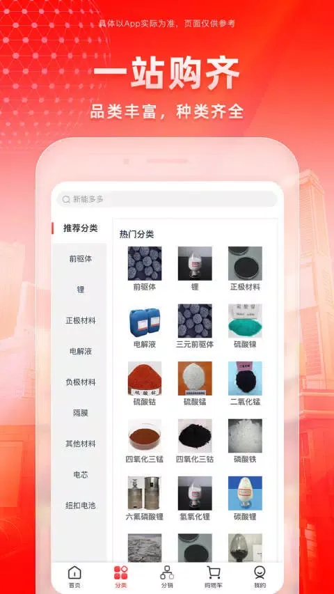 Currently, our primary focus lies in upstream raw material trading, targeting new energy production and processing companies as our downstream clients. The range of products we offer includes lithium, precursors, cathode materials, anode materials, electrolytes, separators, PVDF, copper and aluminum foils, caps, steel shells, cells, battery packs, and more. These products cater to the diverse needs of the new energy industry, providing comprehensive online commodity trading services through three main models: self-operated e-commerce, third-party e-commerce, and SaaS services.