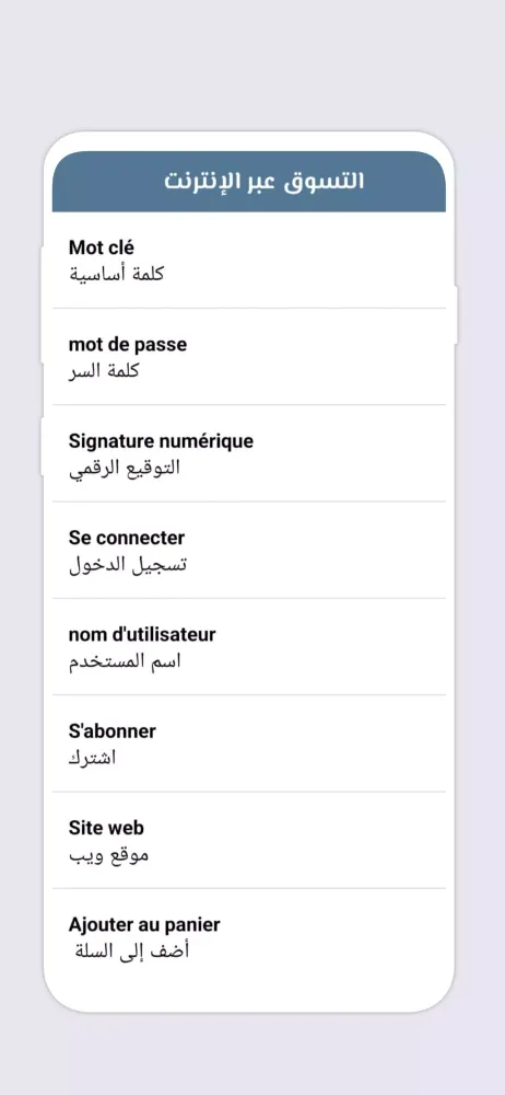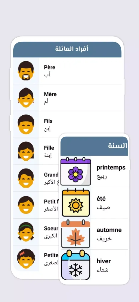 - Phrase Collection: A vast collection of commonly used French phrases translated into Arabic, aiding in quick and effective learning.